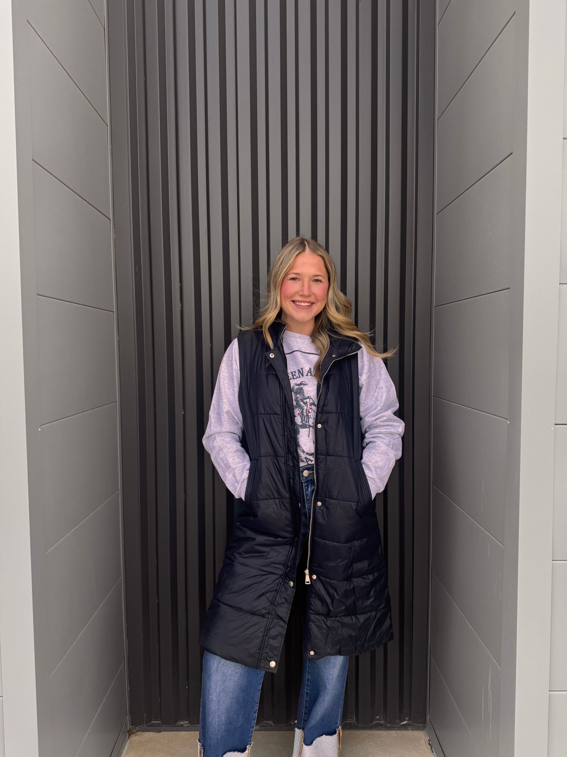 Black Long Puffer Vest